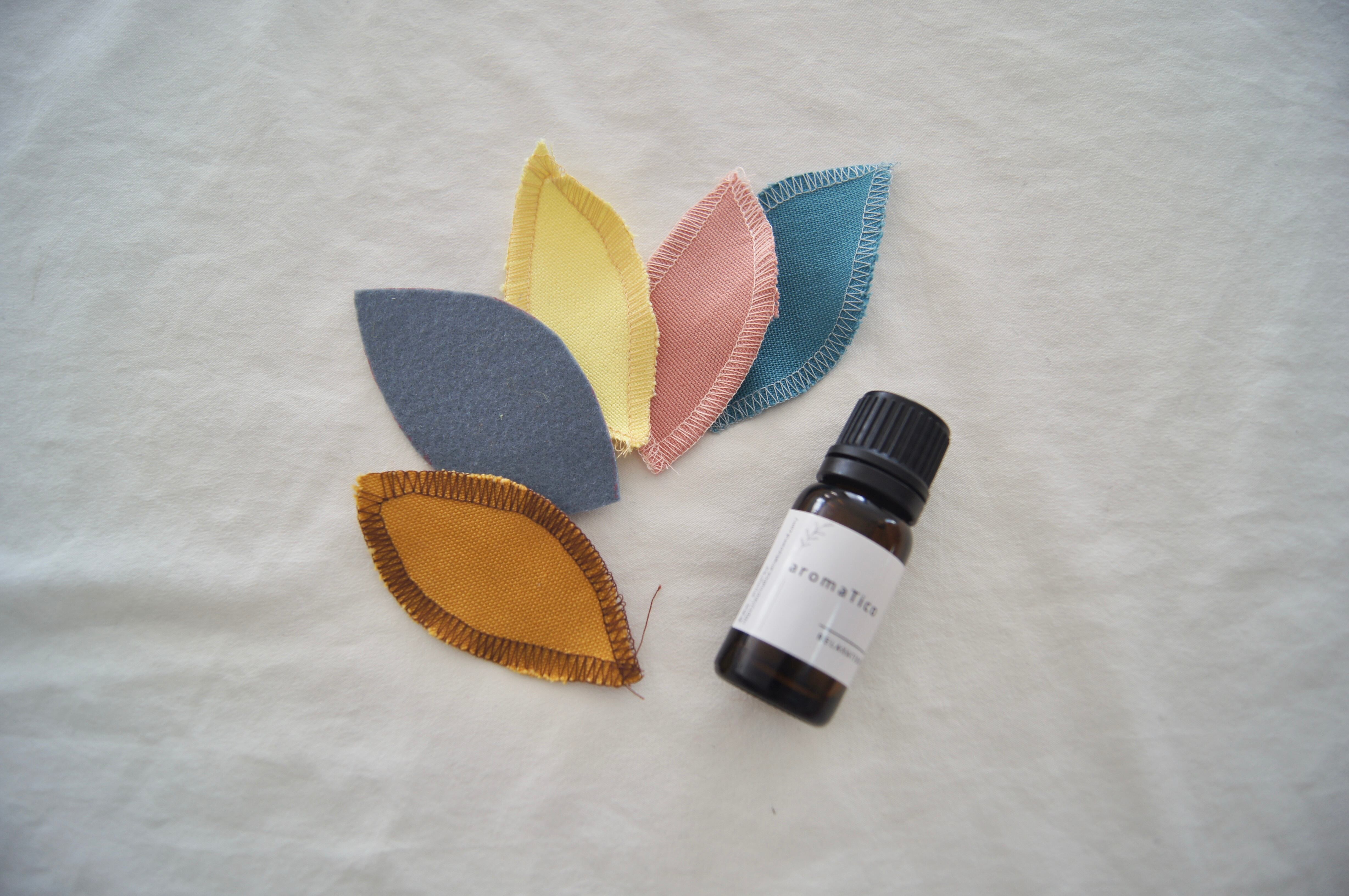 【プレゼント】リーフ型はぎれ3枚 *エッセンシャルオイルを付ける布としてご利用ください